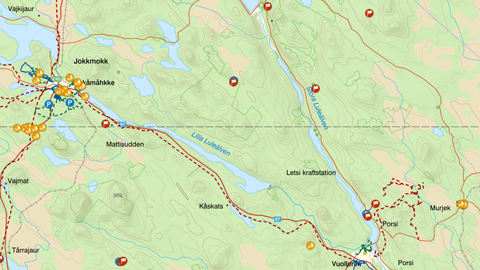 Friluftskartan är en guide för dig som vill uppleva naturen i Jokkmokks kommun. Den visar utflyktsmål, vandringsleder, skoterleder, skidspår och löpspår.
