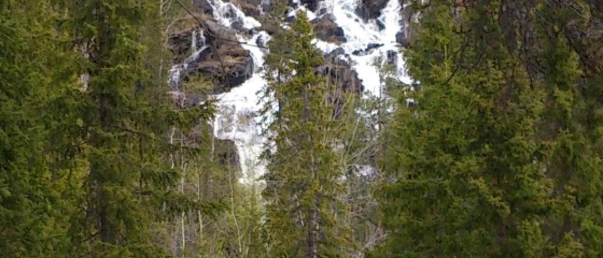Ett vackert vattenfall i Jokkmokks fjällvärld